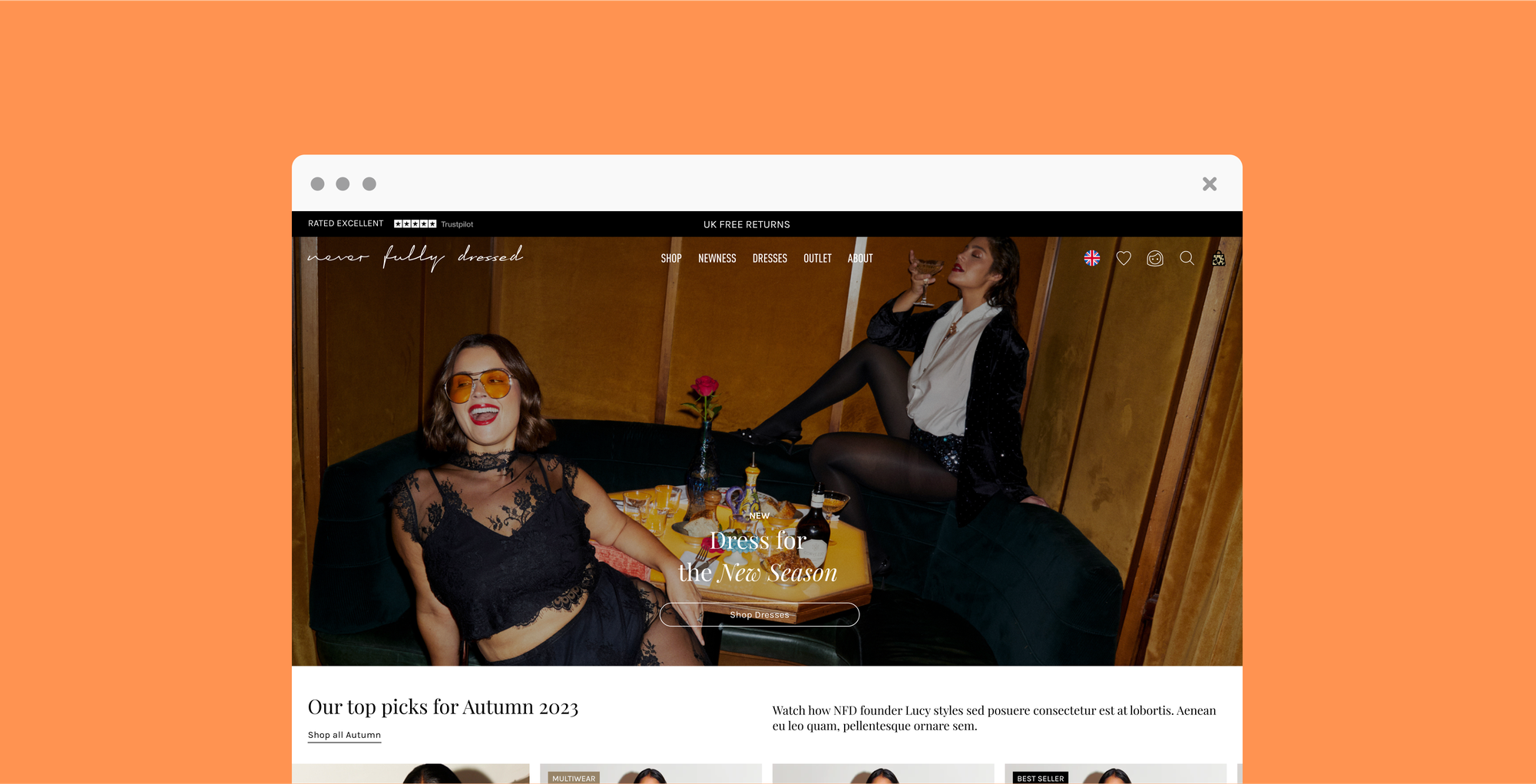 This beautifully built website offers the contemporary elegance and streamlined user experience the brand was determined to achieve. Also, with more in-house control now available to them, the team are free to explore their creative potential, optimise the user journey, and swiftly adapt to market changes. In short, the Never Fully Dressed team are literally dressed for success!